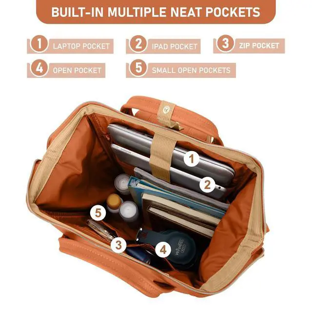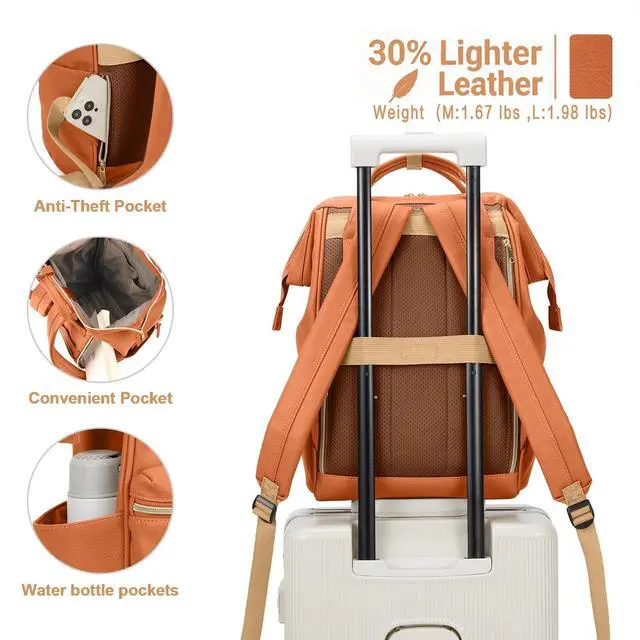 [CHOOSE YOUR PERFECT FIT: MEDIUM vs LARGE] Tailored for your tech. Medium Size fits up to 14"-15" laptops (compatible with MacBook Air 15); Large Size is engineered for 15.6" -16" laptops (compatible with MacBook Pro 16). Both sizes include a separate slot for a 12.9" iPad, keeping your professional gadgets organized and scratch-free. ^^ 4. [ALL-DAY ERGONOMIC COMFORT & SECURITY] Specifically designed for teachers and nurses who are on their feet. Features breathable honeycomb mesh shoulder straps and a ventilated back panel to prevent sweat. Includes a hidden anti-theft back pocket for your passport and phone, plus a sturdy luggage strap for hands-free airport travel. ^^ 5. [WATER-RESISTANT DURABILITY & SUPPORT] Built with high-density, water-resistant PU leather and reinforced metal zippers, this bag protects your electronics from unexpected rain and daily wear. The reinforced base ensures the backpack stands upright even when empty. We back every purchase with dedicated 24/7 customer support for a worry-free professional investment.