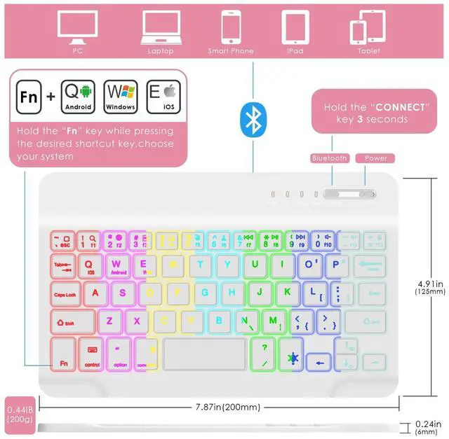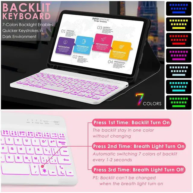 Android Tablet (MODEL: SM-X110) with detachable keyboard has 7 colors backlight, it can be adjusted to different colors you favor easily by pressing light-control buttons. Galaxy Tab A9 8.7 inch tablet cover provide excellent visual experience when you type in dark conditions ^^ REMOVABLE WIRELESS KEYBOARD-Backlit Keyboard Case for Samsung Galaxy Tab A9 8.7 inch Wi-Fi only