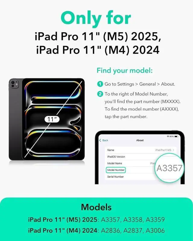 Compatibility: The leather case is designed for iPad Pro 11 inch (M5) 2025 (Model number: A3357, A3358, A3359); for iPad Pro 11 inch (M4) 2024 (Model number: A2836, A2837, A3006); Please check back bottom of your iPad to find the model number ^^