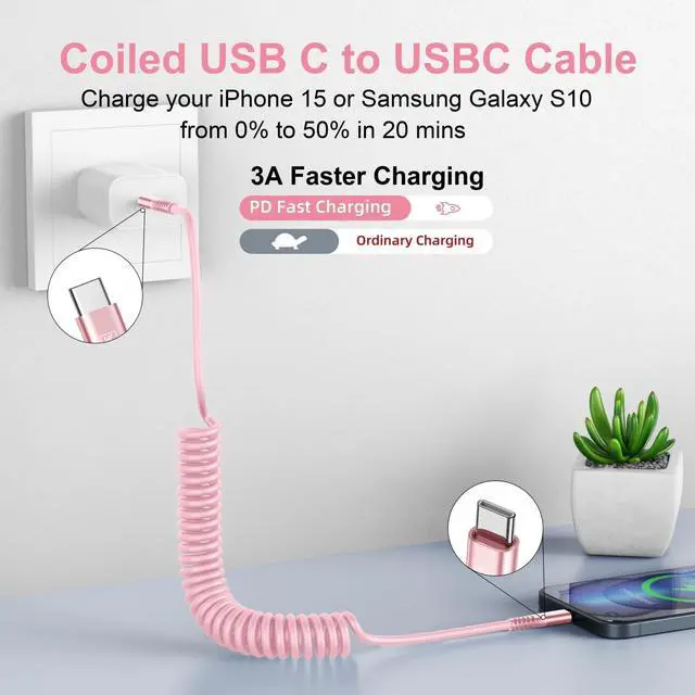 ^^ What you get: 2 Pack 3ft coiled usb c to usb c charger cable.