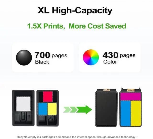 Page Yield: 650 Pages per 61XL black ink cartridge, 350 Pages per 61XL tri-color ink cartridge ^^ High Compatibility & Strict quality inspection: Equipped with intelligent chip that ensure full working compatibility with your printer. Every printer ink 61 cartridge is strictly tested with industry quality control processes to perform superb results ^^