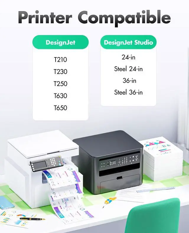 ^^ Compatible Printer: Compatible with HP DesignJet T210, T230, T250, T630, T650 Serie Printer DesignJet Studio 24-in, Steel 24-in, 36-in, Steel 36-in Series Printer.