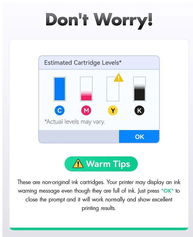 The latest chip version: Zstint the Ink Cartridges is equipped with the latest upgraded version of the chip, ensuring perfect compatibility with each Ink Cartridges and quick recognition of the printer, allowing you to enjoy efficient and worry-free printing. Our Ink Cartridges have passed ISO9001 and ISO14001 certification. High-quality Ink Cartridges meet the demands of high print volumes. Fine ink ensures clear and stain-free printing results and extends the service life of the printer. The printing effect is stable and reliable. You can install and replace it directly without manual adjustment.