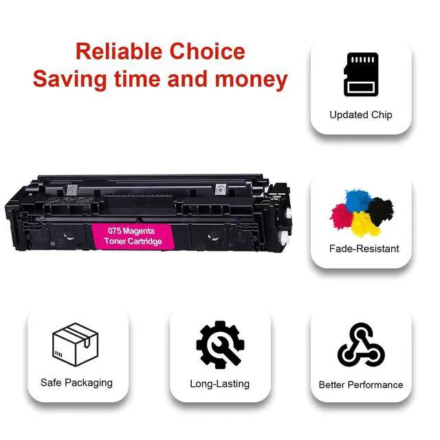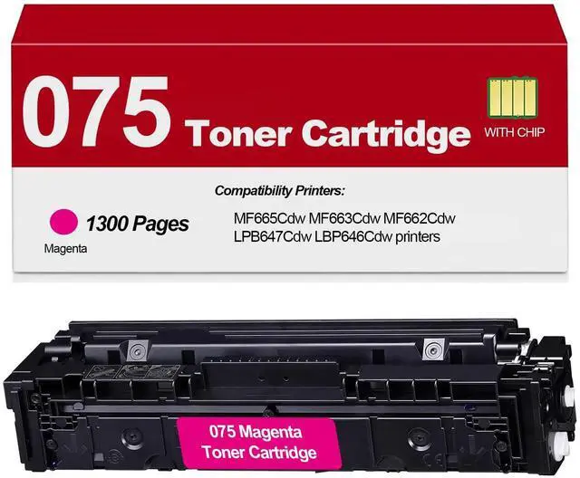 PACKAGE CONTENTS 1 x 075 Magenta Toner ^^ PRINTER COMPATIBILITY for MF664Cdw MF667Cdw MF651CWC LBP646Cdw LBP647Cdw printers, Please confirm the printer model before purchase ^^ PAGE YIELD 1300 pages at 5% coverage (letter/A4) ^^ VIVID COLOR PRECISION High-quality toner ensures vibrant colors and sharp details, delivering professional print ^^ PACKAGING DESIGN The product may differ from the website images due to regular design updates, but the product itself remains unchanged