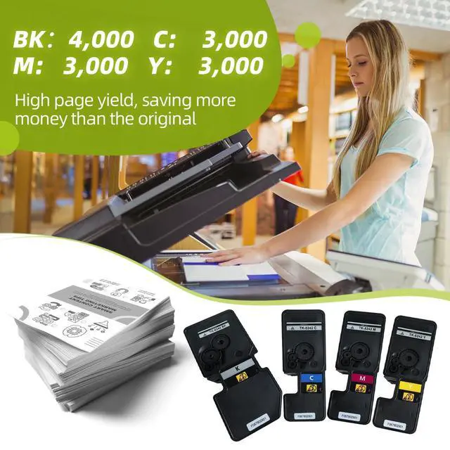 Page Yield Rating: Up to 4, 000 pages per Black and 3, 000 pages per Color compatible Kyocera TK-5242 toner cartridge at 5% coverage on Letter/A4.