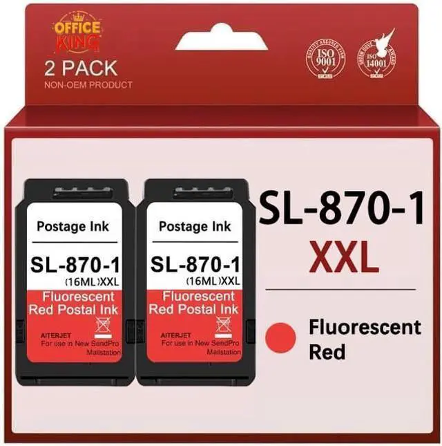 Package Contains: 2 SL-870-1 XXL Fluorescent Red Postage ink cartridge.