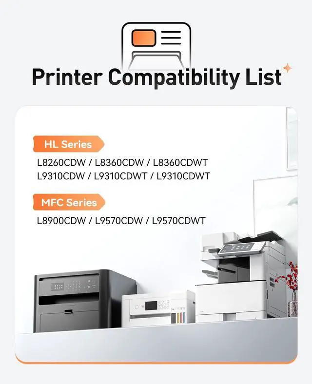 ^^ Compatible Printers: Compatible with Brother HL-L8260CDW HL-L8360CDW HL-L8360CDWT HL-L9310CDW HL-L9310CDWT HL-L9310CDWT MFC-L8900CDW MFC-L9570CDW MFC-L9570CDWT Series Printer.