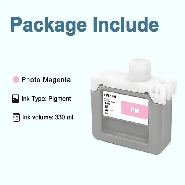 Superior Quality: This high-yield PFI-1300 ink cartridge uses the latest chip technology and high-quality pigment ink, with an anti clogging nozzle design and easy installation. Provide clear text and graphics ^^