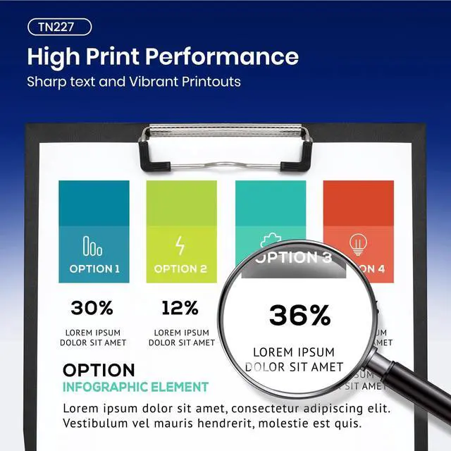 Reliable and long-lasting: The tn227bk/c/m/y toner provides consistent and long-lasting output from the first page to the last page, reducing the frequency of replacement and ensuring reliable operation ^^