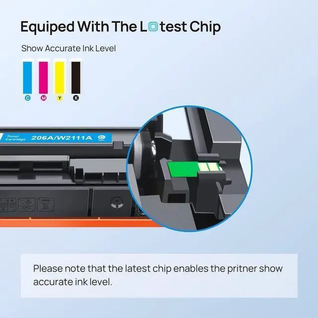 With Chip: HALLOLUX For hp 206a toner cartridges 4 packall install with upgraded chip. NO need to removed and installed original chip on them. Compatible with HP Color Pro MFP M283fdw M283cdw M282nw series printer, Color Pro M255dw series printe.