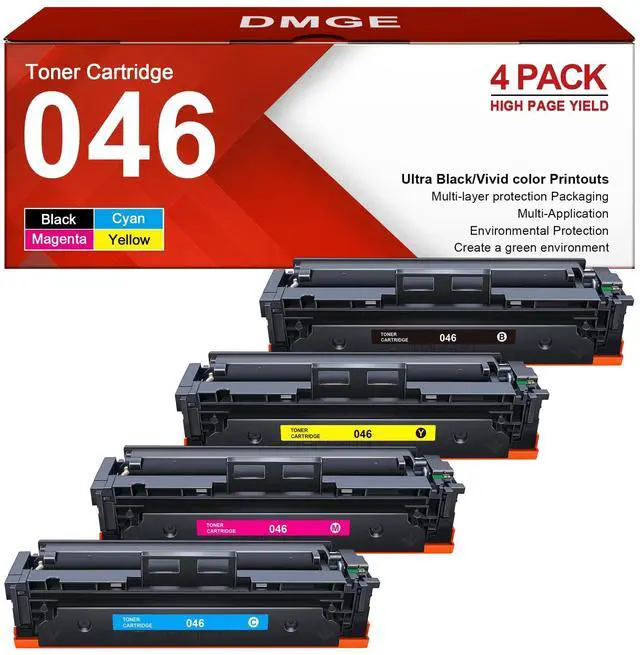 Package Includes: 1 x 046 Black toner cartridge, 1 x 046 Cyan toner cartridge, 1 x 046 Yellow toner cartridge, 1 x 046 Magenta toner cartridge. Total 4-Pack replacement for Canon 046 toner cartridge set ^^