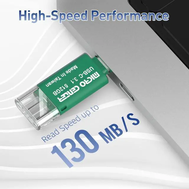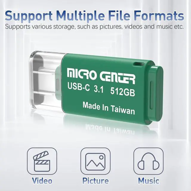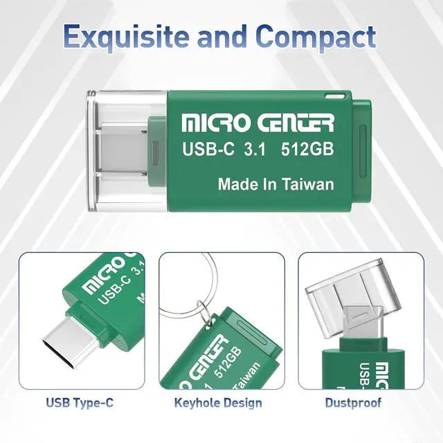 Micro Center 512GB Mini Flash Drive for USB Type C Devices, easily transfer files between smartphones, tablets and computers. Free up space on your Android smartphone (Mobile device requires USB Type-C port and On-The-Go (OTG) support). Storage is fast, safe and stable ^^ High-Speed USB 3.0 /USB 3.1 Gen1 performance of up to 130MB/s Read Speeds to ensure transferring data never slows you down, backward compatible with USB 2.0 and 1.1 ports ^^ Exquisite and Compact, with 1.89" * 0.71" * 0.31" (length*width*height) dimension can take it with you anywhere in your pocket.