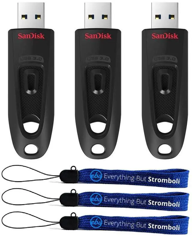 Bundle includes: (3) 64GB SanDisk Flash Drive Ultras and (3) Everything But Stromboli Lanyards.