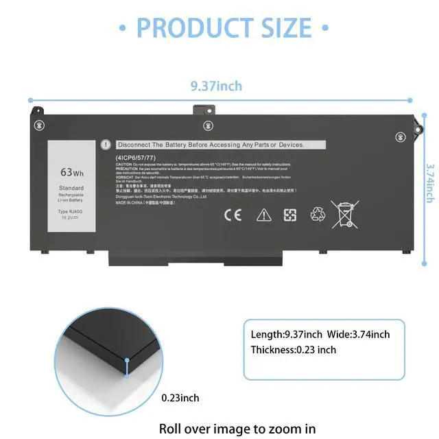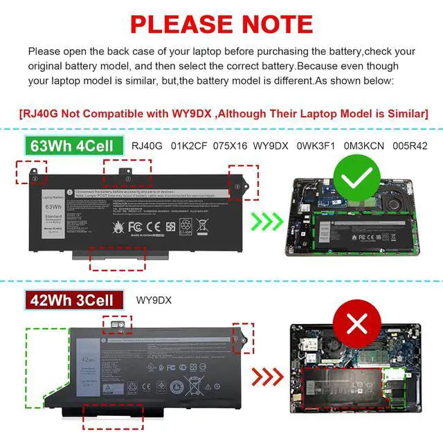 Compatible Laptop Models: 63Wh RJ40G Battery Replacement For Dell Latitude 14 5420 series; Replacement For Dell Latitude 15 5520 series; Replacement For Dell Precision 15 3560 series; Replacement For P137G P137G001 series; Replacement For Dell P104F P104F001 P104F002 series ^^ Replacement