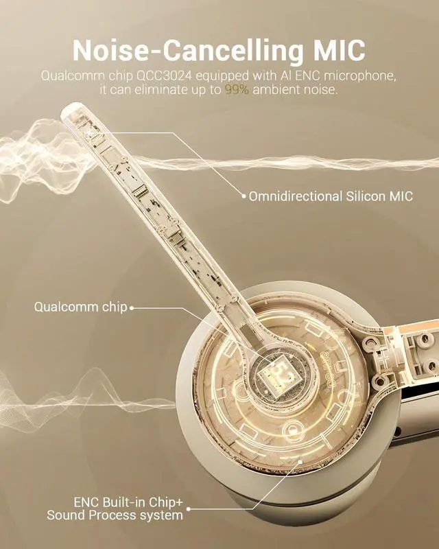 Qualcomm cvc 8.0 Noise Cancelling MicrophoneJIAMQISHI EH02P wireless headset for computer Qualcomm chip QCC3024 equipped with AI environmental noise cancelation microphone, it can eliminate up to 99.99 % of the ambient noise. So you can hear and be heard clearly wherever you are. ^^ Bluetooth HeadphonesOn-ear headphones connect quickly to your phone or tablet via Bluetooth. Phone headset with built-in audio sound card, tested thousands of times for your daily conversation/music/movie/game by JIAMQISHI, bringing you extra clarity and bass for a pleasant experience ^^ Adjustable HeadsetThe padded headband of the wireless headset is adjustable and stretchable to fit your head perfectly, suitable for both children and adults.