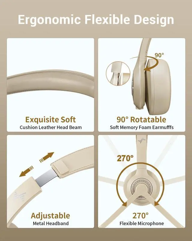Soft protein memory foam ear cushions are made with premium breathable material, ROHS certified material prevents ear heat and sweatThe microphone return to home position can mute the function only applies to the call state ^^ Long Battery Life with Charging DockPC wireless headphones with microphones come with a 350 mah battery, and Bluetooth headphones provide up to 14 hours of continuous talk and 200 hours of standby time on a single charge. In addition, this laptop wireless headset comes with a plug-and-play charging dock, which you can use for wireless charging or a TYPE-C charging cable.