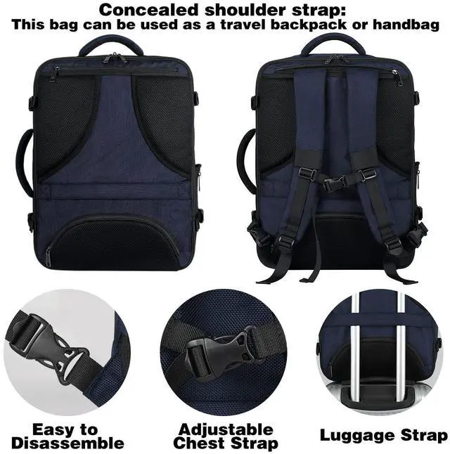 ^^ CONCEALED SHOULDER STRAP: The carry on backpack is designed with hideaway padded shoulder straps which can be easily stored away in zippered back panel, transforming this vacation backpack from carry-on duffel to briefcase style and provide you a more flexible carrying experience. The luggage backpack is light to carry due to its adjustable shoulder straps, comfortable air-mesh ventilated back panel. The best gift choice for Thanksgiving Day, Christmas, New Year, Valentine's Day ^^