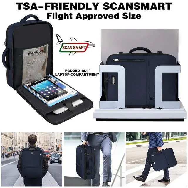 FLIGHT APPROVED & CARRY ON: The large travel backpack at the checkpoint can be 180 degrees unfolded, so you can quickly pass the security check, exclusive designed for airplane traveling. A luggage strap on the back is designed to fit on luggage/suitcase, for easier carry on international travel or cruise. It fits overhead and under seat. Ideal for the weekend traveler. This versatile luggage backpack also meets airline carry-on requirements, for airlines such as Easy Jet, Spirit, Jet Blue.