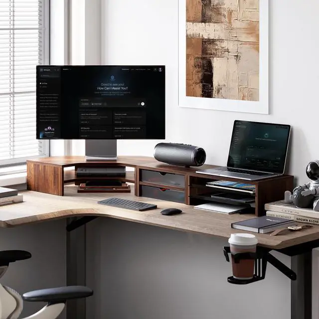 Limitless DIY Configurations: Fenge corner monitor stand modular system offers 6 flexible layouts. Freely assemble 3-unit into a monitor riser, a desk shelf or a corner desk organizer, The act of building it your way enhances ownership. The resulting organized, personalized triangle zone boosts efficiency for work, hobbies, and creative projects, helping you build a better, more inspired self.
