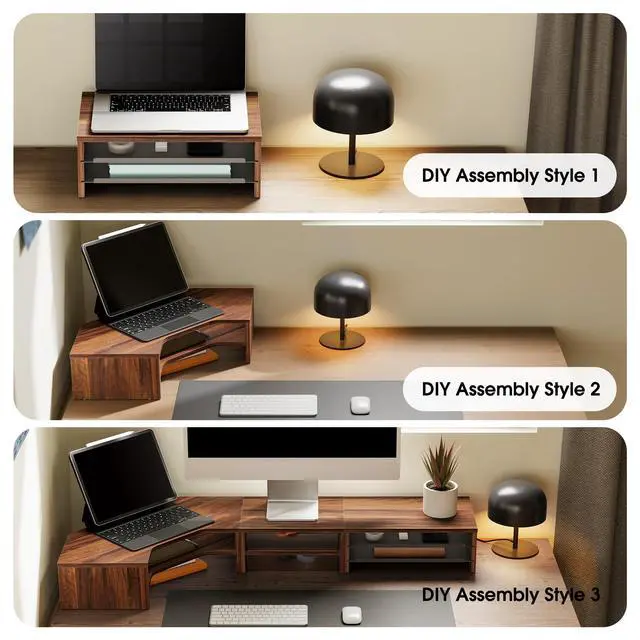 Use: With pre-drilled holes and included tools, Instruction, enjoy a hassle-free 15-minute assembly. From Workspace to Showcase, More than just computer stand, desk shelf storage, it's a display system to showcase your personality and improve your space's aesthetics.