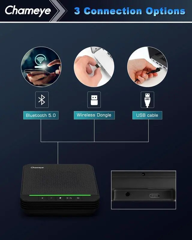 One-click F3 (remote control) to turn on AI tracking (F4 to turn off), with adjustable speed (1-10 levels) for smooth target following. Automatic framing keeps speakers centered, never missing key meeting moments. ^^ Professional Conference SpeakerphoneThe matched Bluetooth speakerphone (paired with 4K PTZ Conference Room Camera) supports 5m ( 16.4 ft) omnidirectional voice pickup. perfectly covering 8-12 people. AI noise cancellation effectively removes distracting background noises like keyboard clicks and air conditioning, ensuring crystal-clear conversations for everyone. 3 connection methods (USB/Bluetooth 5.0 /wireless dongle) with plug-and-play, ^^ Wide CompatibilitySupports TF memory card for video recording.