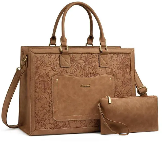 LOVEVOOK Laptop Tote Bag for Women, 15.6 Inch Work Bags, Vintage Leather Tote Bag, Waterproof Computer Bags with Clutch Purse, Large Capacity Messenger Bag for Teacher College Business Office