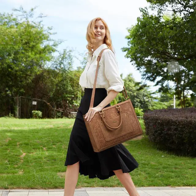 A Fashion Statement, Not Just a Laptop Bag Crafted from retro-textured vegan leather, it offers a chic, minimalist look. It's the perfect stylish accent for work, cafes, or weekend outings.