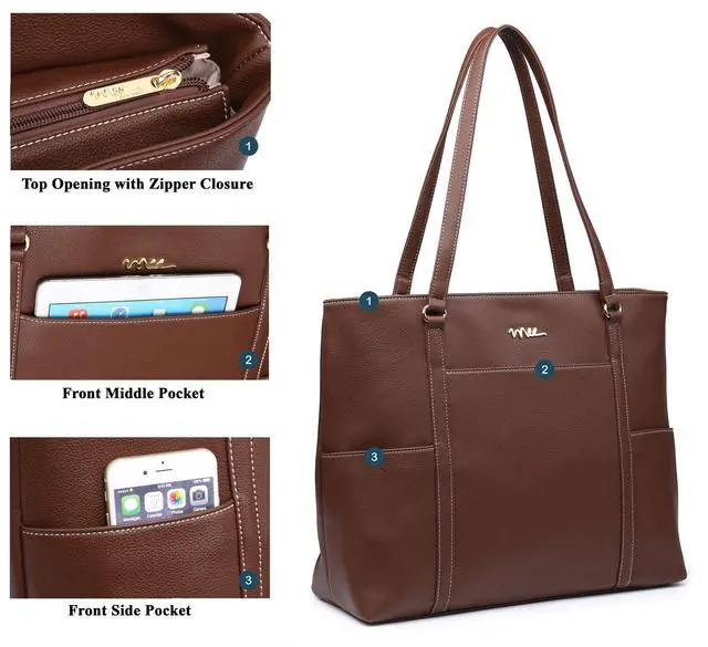NNEE Inc's laptop tote bag is simple, elegant and highly functional. Made with high quality faux leather. It offers more bag space to fit in your essentials! It's classic shape and unfussy design definitely gives it staying beauty.