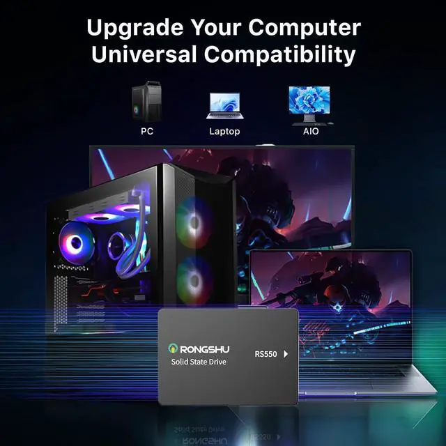 Upgrade your computer: Compared to traditional mechanical hard drives, the RONGSHU SATA SSD delivers more than 3 times the performance, which significantly improves the speed of booting up your computer, file transfers, and game loading. It also features lower power consumption and delivers a quiet running experience. It is the best choice for computer and laptop upgrades ^^