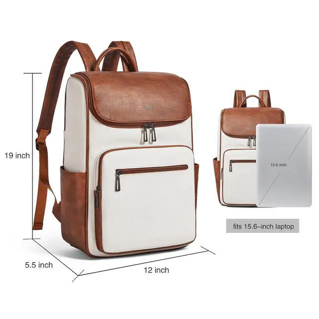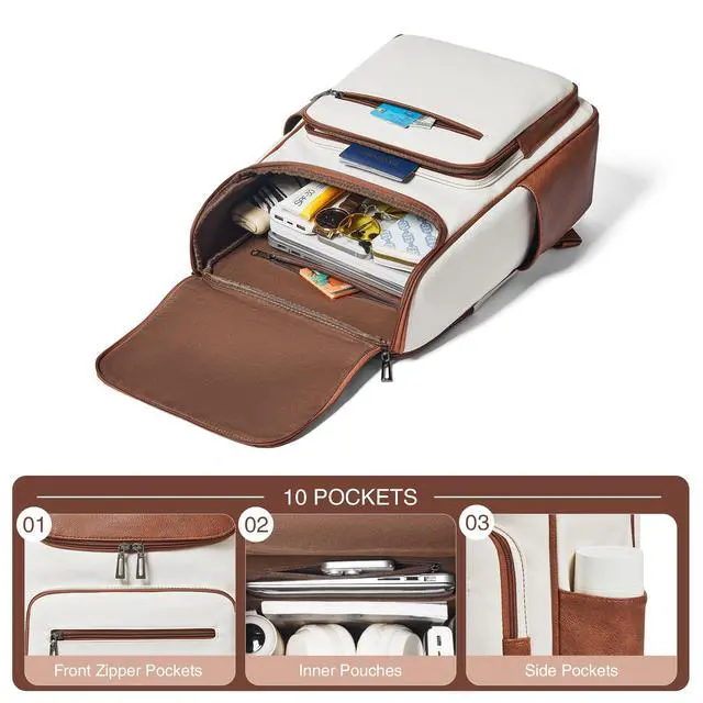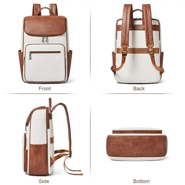 Spacious size & smart laptop storage - measuring 17.25" x 11.8" x 6.3" and just 1.91 lbs, this Vegan Leather backpack features dual storage. the dedicated padded sleeve protects 15.6" laptops while the main compartment fits up to 17" devices to ensure secure protection for daily travel. ^^ Premium material & durability - crafted from soft, lightweight vegan leather with smooth-gliding zippers. reinforced stitching at stress points ensures this casual leather daypack is built to last. ^^ Large capacity & smart organization - with 30l of space, easily organize daily necessities like laptops, a4 files, cosmetics, and books.