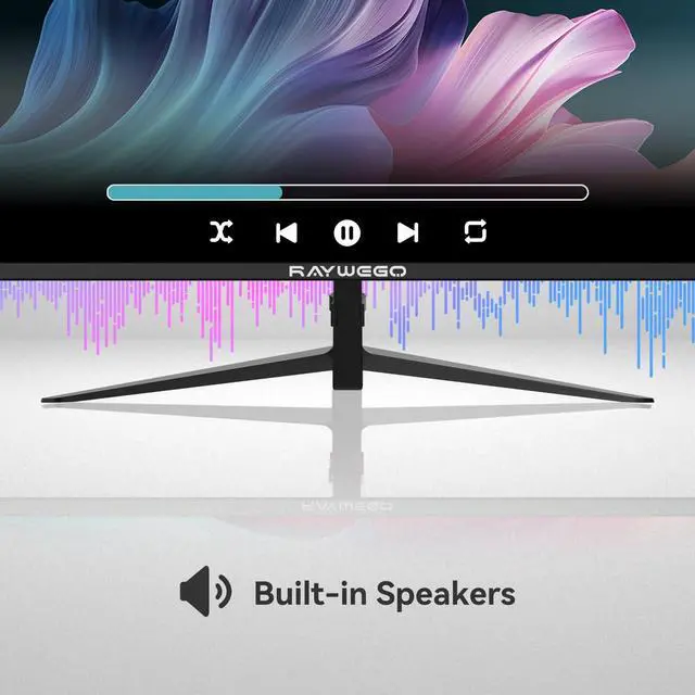 - The Raywego 24-inch low blue light display features a unique built-in audio design. Whether you are working or playing intense games, our built-in speakers can provide rich and seamless audio while keeping your desk tidy. ^^ & The smooth 100Hz can make your work run more smoothly, and it also meets your gaming needsThe VA panel ensures deep, detailed shadows, while HDR10 adds brightness and realism. With a 3000:1 contrast ratio, this 1080p gaming monitor and monitor 24 inch delivers crisp details, helping you enjoy every moment with clarity and precision, ideal for gaming, streaming, and creative work.