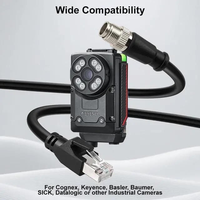 Wide Range of ApplicationsCompatible for Cognex In Sight 8200 8400 Series, Information and communication equipment, sensors, actuators, encoders, motors, industrial cameras. This Ethernet cable provides Ethernet connectivity and supplies power to the vision system. ^^ More DurableM12 connector are IP67 waterproof rating, protecting against liquids and particulate. Featuring shielded RJ45 Connector and over-molded strain reliefs on both connectors to protect against electrical interference. Highly flexible drag chain cable, abrasion and bending resistance. ^^ Anti-interferenceDouble shielded(braid + foil) design and Oxygen-free copper pure copper core, making signal transmission quicker and more stable.