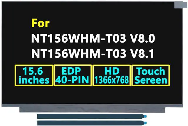 Important: Ensure that the resolution, screen size, and touch/non-touch features match those of your current screen. Screens with different specifications will not be compatible with your device. If you are unsure about your current screens specifications, please feel free to contact us before purchasingwere happy to assist! Diagonal Size 15.6"T reatmentGlossyResolutionHD 1366 (RGB) 768Shape StyleSlim (PCBA Flat) Signal Interface40-pinMounting bracketsNonTouch PanelOn-Cell Touch, USB. This package includes a brand new LCD screen only. It does not include any extra control boards, bezels, back covers, instructions, or tools. Please retain all your original components. If you are unsure about compatibility, feel free to contact us for confirmation. Comes with complimentary double-sided stretch-release adhesive tape for easy installation.