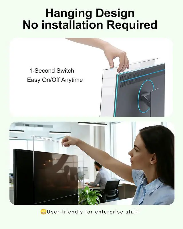 Effortless Installation: Experience seamless installation with our hanging-style design that eliminates the need for adhesives. Simply attach and remove it anytime, without any worry of sticky residue left behind on your monitor.