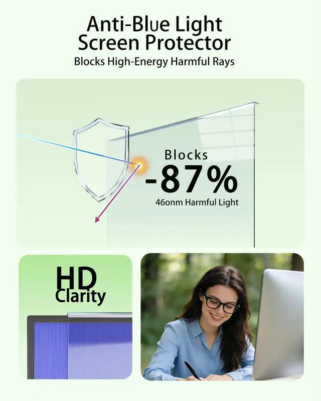 Eye-Care Solution: Safeguard your vision and alleviate eye fatigue with our advanced blue light blocking technology. Perfect for those who spend countless hours in front of their screens, it also protects against dust, fingerprints, and scratches, ensuring a more comfortable viewing experience.