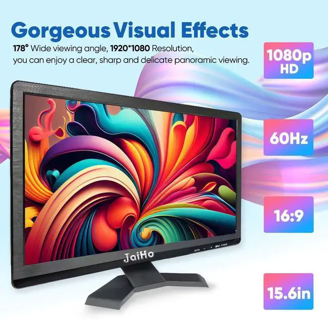 FHD 1080P Resolution 15.6 inch LED HD Monitor DisplayThis 15.6 inch Widescreen Display supporting 1920*1080P high resolution monitor, the image is clear and exquisite, colourful. Delivers you with the vivid and stunning images, presenting videos or pictures with more details. Can be VESA mounted on the wall with Hanging wall. Multi-function MonitorThe versatility of this screen enables it to be used in CCTV systems, PC monitors, rear view cameras monitor, and indoor security use. If you are a gamer, connect the screen to your gaming console and enjoy better viewing.