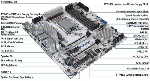 High Productivity: 4* desktop U-DIMM DDR5 RAM (it supports non-ECC and unbuffered-ECC memorry), MAX 128GB, 3* M. 2 NVMe 2280/22110 size. Expandable to 12* SATA via 3* SFF-8643 cable we supplied, stable and ultra-fast transfer speed. 1* Type-C (USB 3.2 10Gbps, Supports data transfer only), 4* USB 3.2, 2* USB 2.0 ^^ 2.5G i226-LM & 10G