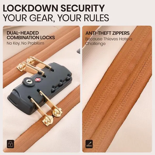 Security Upgrade: The travel backpack with vacuum system offers peace of mind with a TSA double-headed combo lock that secures both laptop and main compartmentsprotecting valuables while ensuring quick security passage, preventing baggage detention from locks, and saving time. The anti-theft zippers effectively resist prying. Multiple security layers ensure your vacuum backpack travel keeps your business trip worry-free, letting you focus solely on your journey ^^