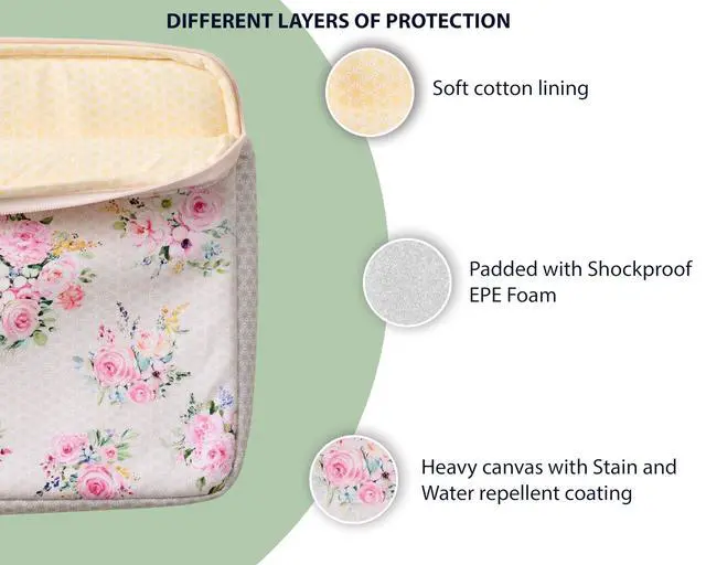 Maison d'Hermine Laptop Sleeve Bag Upto 15.5 inch Stain and Water Repellent Cotton Canvas Easter Gifts - Sweet Rose Lavender