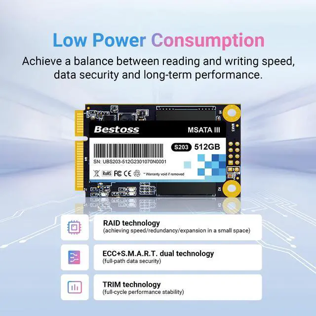 ^^ Technical Support: Whether it's achieving speed and security through RAID technology, realizing end-to-end protection from the microscopic to the macroscopic level via ECC and S. M. A. R. T., or maintaining long-term performance stability with TRIM technologyall these advanced features are integrated into this compact MSATA SSD. It is not just an upgrade; it infuses your data environment with an intelligent, reliable management system.