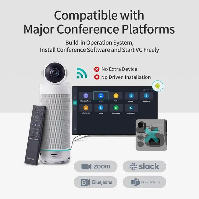 [Safe & Versatile Compatible] - The KanDao Meeting S is compatible with all popular video conferencing platforms such as Zoom, Google Meet, Microsoft Teams and Cisco Webex etc.
