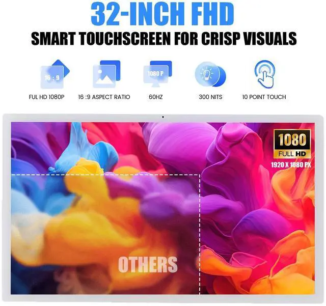 Larger Touchscreen & Camera for Stunning VisualsPresenting a 32-inch expansive touchscreen, this portable smart TV delivers exceptional visual performance with Full HD 1920x1080 resolution, 300 nits of vivid brightness, and a 60Hz refresh rate. Its 10-point multi-touch technology and millisecond-level response ensure ultra-sharp clarity, fluid motion, and intuitive lag-free interaction. Complementing the stellar display is a 5MP high-sensitivity camera, supporting video conferencing, photo capture, and immersive motion-sensing gaming for versatile work and leisure use. ^^ Android 14 OS & 128 GB StorageThe rolling portable touchscreen monitor is equipped with the latest Android 14 OS and certified under Google EDLA (Enterprise Device License Agreement).