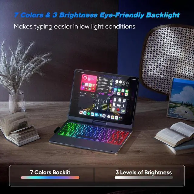 1. Compatible with ipadAir13inch/pro13/pro 12.9C ompatible with iPad Air 13-inch (M3 2025/M2 2024)/ for iPad Pro 13 inch (M5) 2025Model number: A3360, A3361, A3362; iPad Pro 13-inch (M4) 2024. (A2925, A2926, A3007); iPad Pro 12.9 -inch 6th Generation 2022(A2436, A2437, A2764. A2766) iPad Pro 12.9 inch 5th Generation 2021 (A2378/A2379/A2461/A2462), iPad Pro 12.9 inch 4th Generation 2020 (A2229/A2069/A2232/A2233), iPad Pro 12.9 inch 3rd Generation 2018 (A1876/A2014/A1895/A1983), ^^ 2.360R otatable Design for Ultimate FlexibilityEasily adjust your iPad to the perfect viewing angle with the rotating protective case, ideal for meetings, studying, or entertainmentinstantly transforming your iPad into a versatile mobile workstation. ^^ 3. Touchpad + Backlit KeyboardFeaturing a precision touchpad (with multi-touch gesture support) and backlit keys, this keyboard delivers a MacBook-like experience. Perfect for low-light environments and seamless iPadOS navigation. ^^ 4. Stylish & PortablePerfect for Students & ProfessionalsUltra-thin, lightweight design converts your iPad into a compact laptop in seconds. Ideal for classrooms, coffee shops, or business tripseffortless productivity on the go. ^^ 5. Full-Size Keys with Premium Typing ComfortOptimized key travel and quiet, responsive typing ensure comfort during long writing sessions. Perfect for essays, emails, or creative projects without fatigue.