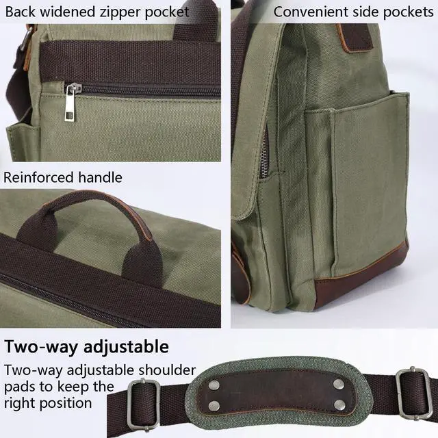 • DIMENSIONS - The external dimension of this canvas bag is 15.7x12.6x5.1in, allowing 1-2cm error. Item weighs 2.9 lbs (1.3 kg);It is a messenger bag which is good for daily, college, business, overnight, etc.