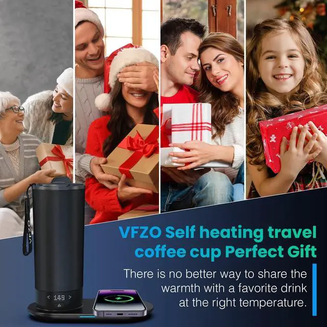 VFZO Smart Coffee Cup - Durable Battery (4000mAh) LED real-time temperature display settings. Safe and reassuring - When there is no liquid in the coffee cup, the self heating mug will automatically stop heating. Best Partner - Whether it's for work or travel, you can always bring it with you and enjoy a warm hot drink.