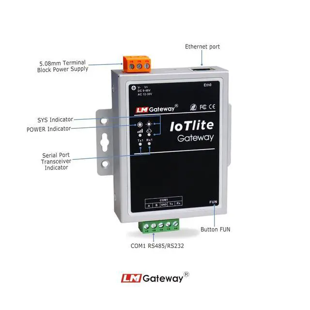 Multi-Protocol Support - LM Gateway provides a serial and ethernet port to communicate with various industrial devices with built-in protocol drivers for Modbus RTU/TCP, BACnet, OPC UA, Allen-Bradley and Siemens S7.