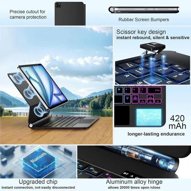 Number: A2316/A2324/A2325/A2072). Not for other devices. Please be kindly check the model number No. starting with the letter "A" of your tablet back before order ^^ 7-Color Backlit Keyboard Case for iPad Air 11/Pro 11 InchFrom dawn to dusk, adapt effortlessly! Adjusting 7 backlight and 3 levels of brightness ensures clear visuals in every setting, enhancing your immersive experience.