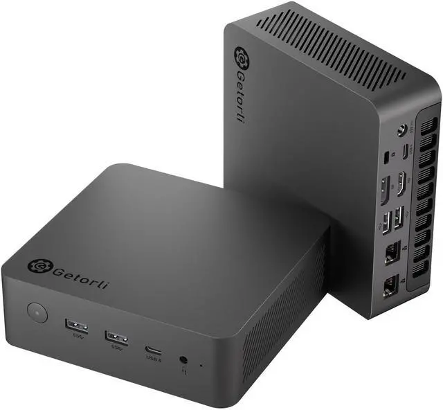Elite 8-Core PerformanceExperience desktop-level power in a compact form. The 8-core/16-thread CPU boosts up to 5.1GH z, paired with powerful Radeon 780M graphics. This mini gaming pc crushes everything from 4K video editing and 3D modeling to smooth, high-settings gameplay, offering a versatile powerhouse for creators and gamers alike. ^^ 4K Four-Screen Setup & Complete ConnectivityMaximize your productivity and immersion. Support for up to four 4K@120Hz monitors via dual Type-C 4.0, HDMI, and DP ports transforms this micro pc into a powerful command center. This is complemented by dual 2.5G Ethernet ports for ultra-stable, high-speed wired networking, a 3.5 mm audio jack, 2x USB 2.0, 2x USB 3.2, Wi-Fi 6, and BT 5.2.