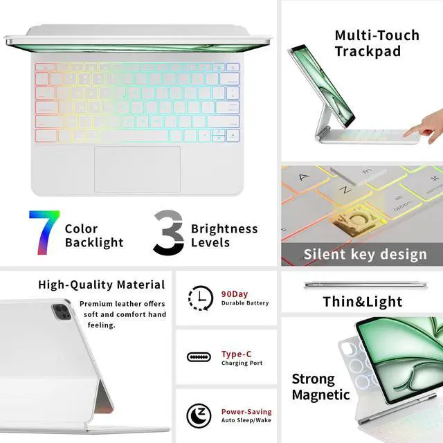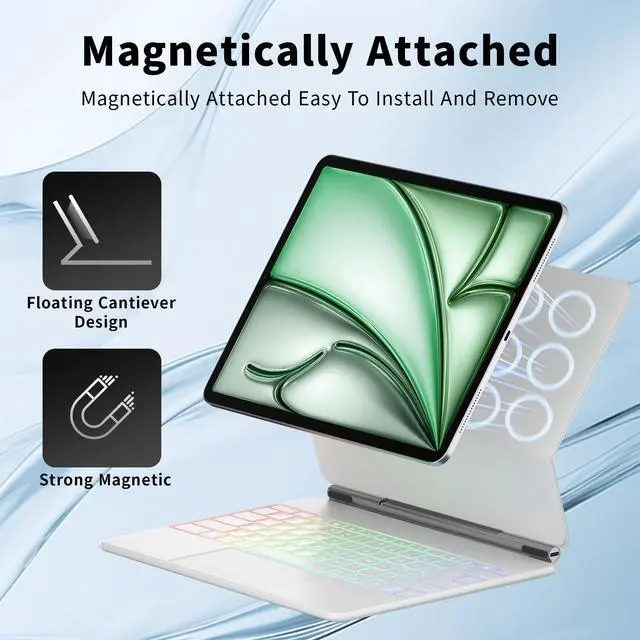 Easily set up magnetic stand: You can magnetically connect your iPad to the back cover, set up the floating cantilever stand with a smooth movement, and transform your iPad into a high-performance, easy-to-use laptop! It is very suitable for travel, business and school.