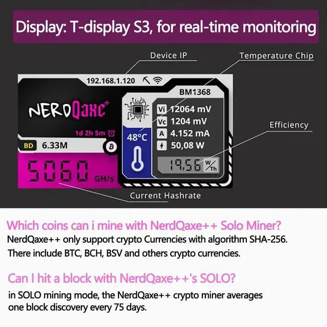 Plug-and-Play Setup with open-source system: Get mining in minutes with our plug-and-play system. Simply connect via Ethernet, power on, and start earning cryptocurrency. The miner supports all popular mining software. Experienced mining enthusiasts will appreciate the open-source architecture allowing for custom firmware modifications and performance tuning to maximize your mining potential. ^^ Future-Proof Mining for